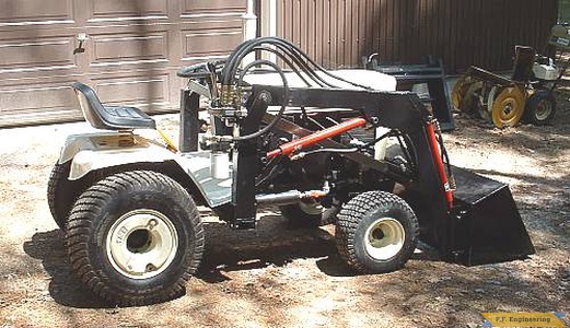 Mark R. from McKees Rocks, PA built this front end loader (and micro hoe) for his Cub Cadet 125 garden tractor
